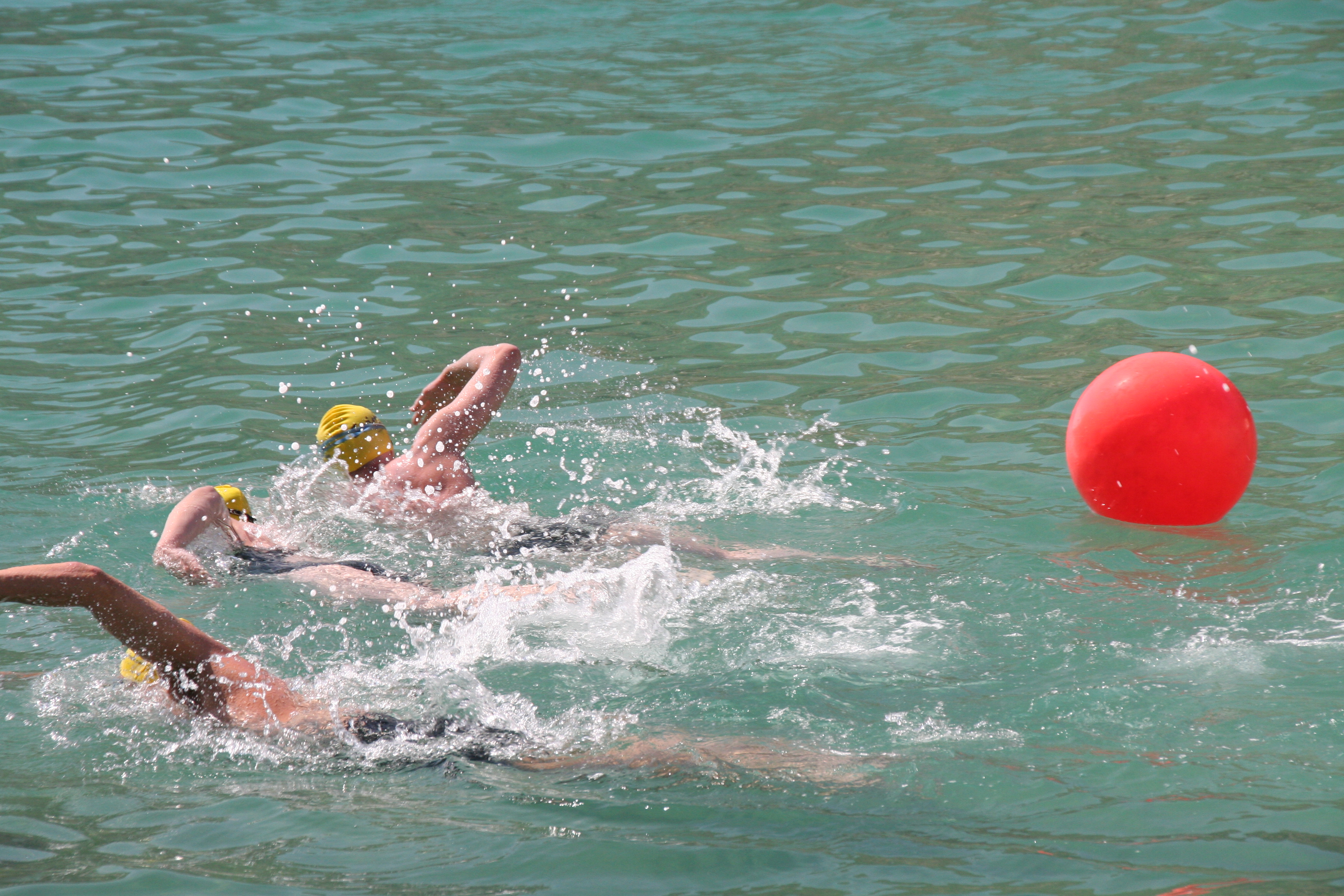 Do not turn in unless you absolutely cannot go any further. So. Can you take even one more stroke? Yes? Okay, round the buoy and keep going. Do it. Okay, here we go again.