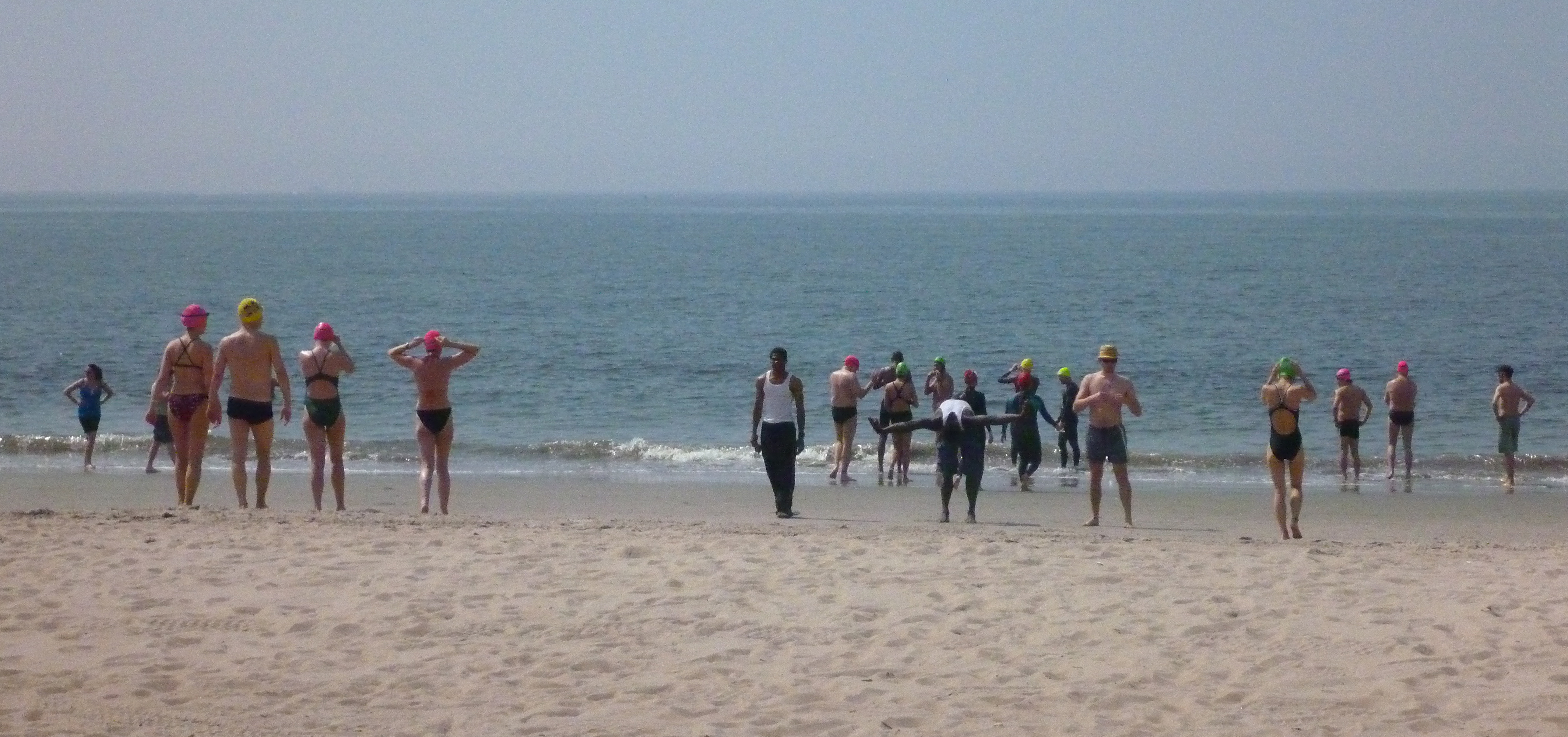 So the thought occurred to me, at some point after returning from Malta, that I was probably certifiably one of the hard-core, nut-jobs now, and that their crazy company was exactly what I needed and craved. And man was I right. I feel tremendously lucky to have such a great group of swimmers to train with at a beach that is only a 20-minute drive from my home. On this swim, our first day with the CIBBOWS, we met just a few. The beach was still pretty empty.