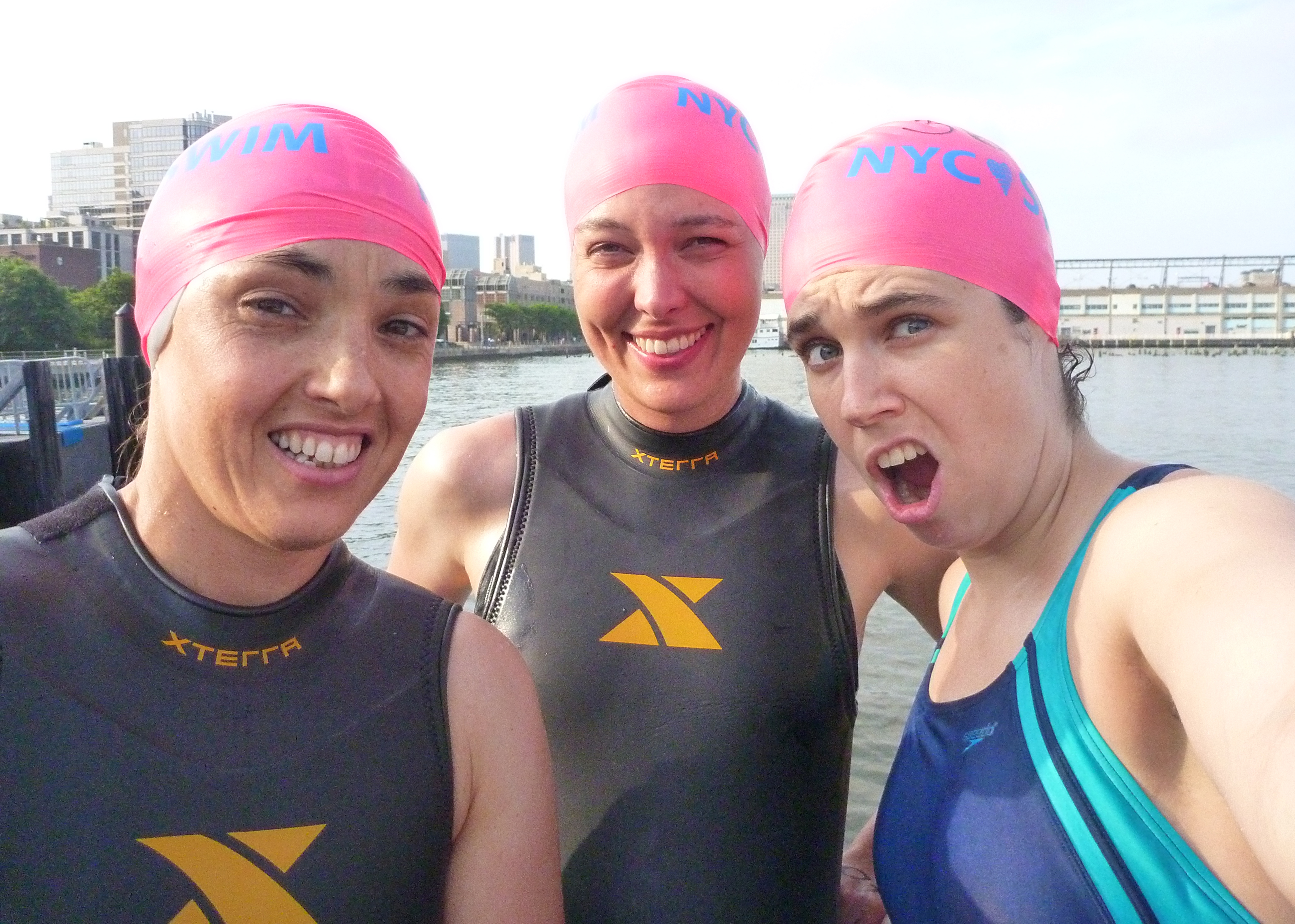 The short, 1.6 mile swim was “wetsuit legal” because of low water temperature, so it seemed some 90-95% of the swimmers wore wetsuits. I am not here to judge—to each his or her own! It’s just an observation. (There are lots of reasons people wear wetsuits: because they’re training for a triathlon, because they want to go faster, because they prefer not to be cold, because they want to keep Hudson River nastiness off of their body, etc.)