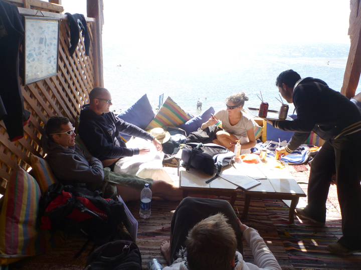 Our hang-out spot overlooking BlueHole (It was easy to get used to lounging on cushions, as all restaurants in and around Dahab seemed to have)