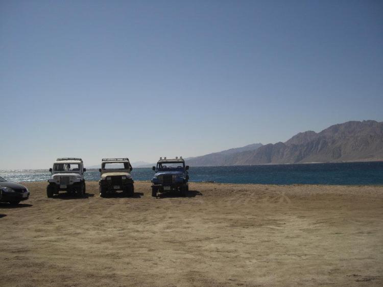 Jeeps waiting for us at the end of our Laguna group swim