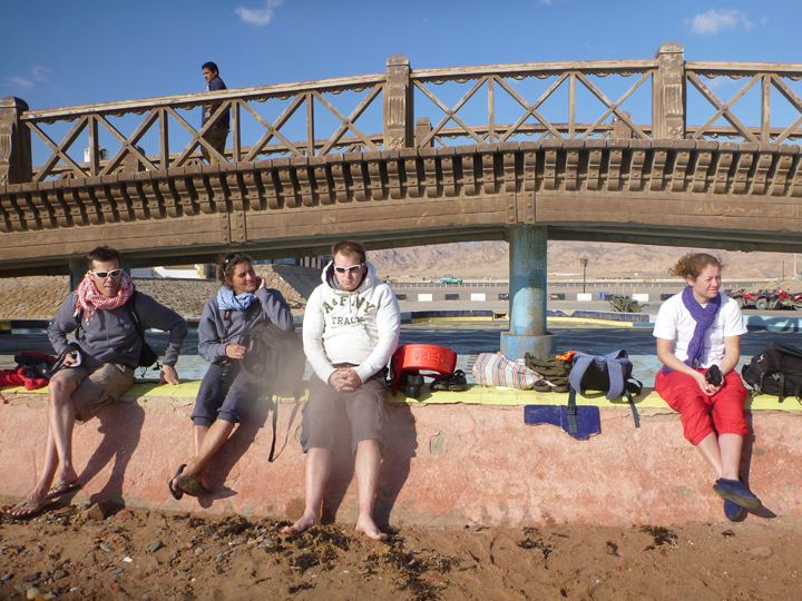 Chillin’ after a super short swim on the day we all flew out: Jeremy, Katia, Ali, and Carole